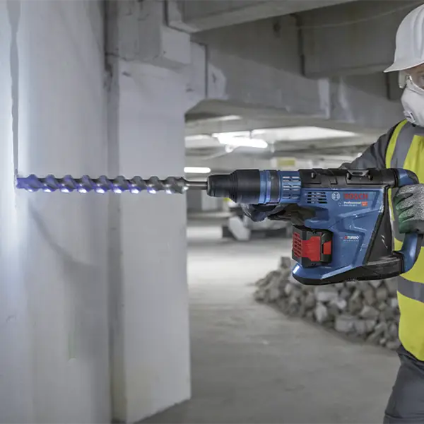 ESTE ROTOMARTILLO BITURBO OFRECE UNA FUERZA DE IMPACTO SUPERIOR Y UN DISEÑO ROBUSTO PARA PERFORACIONES EXIGENTES EN CONCRETO. INTEGRA CONECTIVIDAD BLUETOOTH PARA GESTIÓN AVANZADA MEDIANTE LA APP BOSCH TOOLBOX.