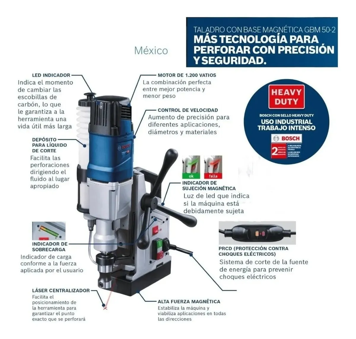 EL BOSCH GBM 50-2 ES UN TALADRO MAGNÉTICO DISEÑADO PARA PERFORACIONES PRECISAS EN ESTRUCTURAS METÁLICAS. GRACIAS A SU BASE MAGNÉTICA POTENTE Y SEGURA, ESTE TALADRO SE FIJA FIRMEMENTE SOBRE SUPERFICIES FERROSAS, PERMITIENDO PERFORAR CON MÁXIMA ESTABILIDAD INCLUSO EN POSICIONES VERTICALES O INVERTIDAS.